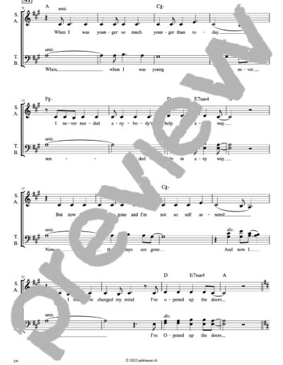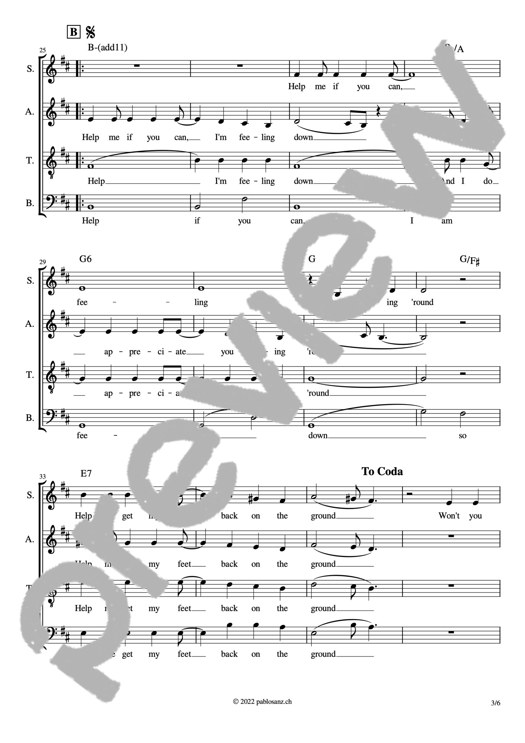 Un chanson bien connue des cafards légendaires ! Cette chanson rapide et dynamique vous donnera sans doute la bougeotte et favorisera la cohésion des chanteurs. Les voix s’entremêlent parfois avec des entrées décalées mais la mise en place reste aisée. Sopranos, altos et basses se partagent la mélodie principale le long de l’œuvre. L’arrangement a été pensé pour être accompagné par des musiciens mais convient tout à fait pour une interprétation a capella. 6 pages.